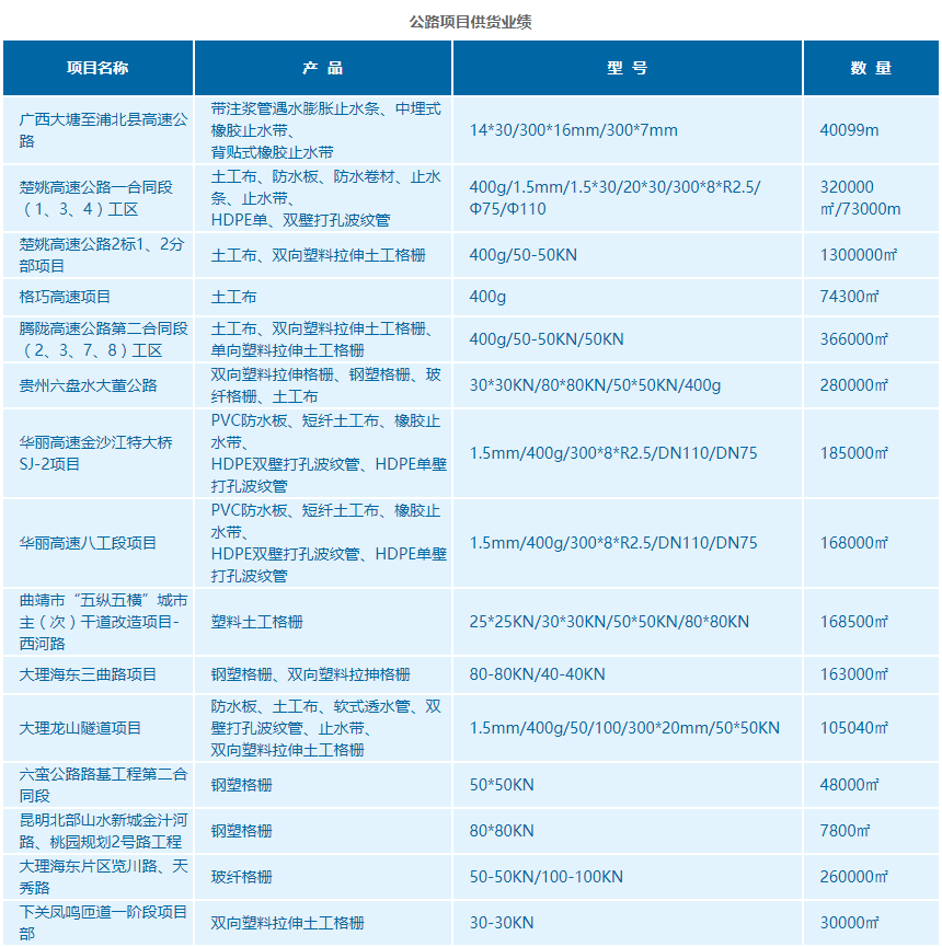 公路項(xiàng)目供貨業(yè)績(jī)